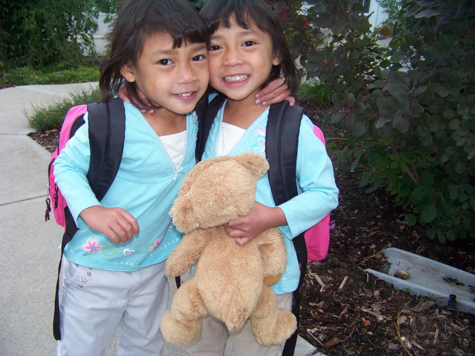 Monday we spent much of the day at the audiologist's office getting Emily and Ashley's cochlear implants activated. When Emily's implants were turned on, her little lips started quivering, her eyes welled up with tears and she buried her head in Roland's chest. Ashley didn't give us any noticeable response until Thursday. I had just put her implant on when Emily flushed the toilet. Ashley burst into tears. We are to increase their volume every few days; then in 2 weeks we go back to the audiologist to get them programmed again-for more sound. (This goes on for several months.)